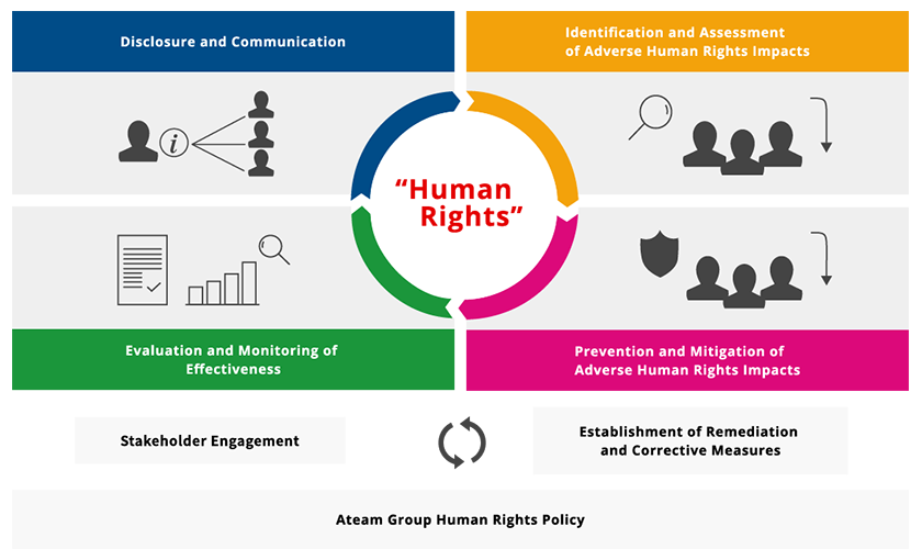 There are two elements quintessential in our pursuit of the happiness articulated in our corporate philosophy: the sustainable growth of our company and our commitment to continuously delivering value to society. We recognize that achieving this necessitates a strong commitment to respecting fundamental human rights and fostering an organization with practices that value and appreciate each other’s differences. Our ability to embrace a diverse array of perspectives and values, combined with our flexibility in an ever-changing environment, is vital for competing in the rapidly evolving IT industry. Respecting human rights is both an inherent responsibility of our group and a critical issue that underpins our business growth and long-term sustainability.