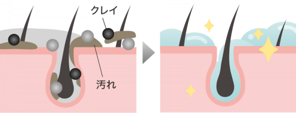 オイルが汚れを浮かし、クレイ(*8)が吸着。細かいスクラブ(*9)が不要な角質も除去します。頭皮や髪のダメージは最小限にしつつ、しっかり洗浄。