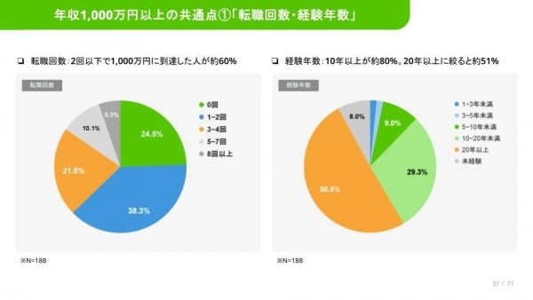 年収1,000万円以上の中での共通項①「転職回数・経験年数」