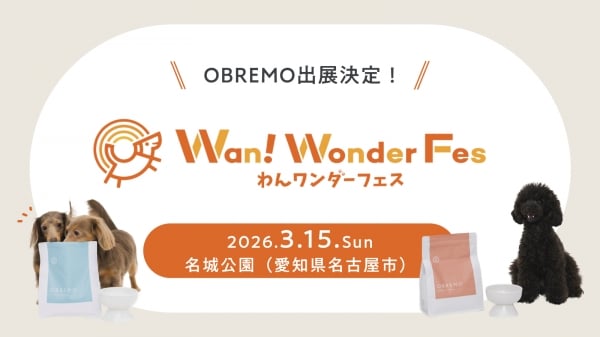 OBREMO初となる野外イベント出展が決定いたしました。 名城公園(愛知県名古屋市) で開催されるわんワンダーフェス@名城公園にて、新作『とろとろ野菜煮込み 春の陽だまりじゃがいも』を含む人気ラインナップを直接手に取っていただけます。