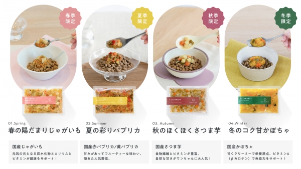 ご愛用者様の口コミやSNSを通じて「これならカロリーを気にせず食べさせられる」「水分補給にちょうどいい」といった輪がじわじわと広がり、新作の発売を心待ちにするファンがシーズンを追うごとに増え続けています。夏のパプリカ、秋のさつま芋、冬のかぼちゃに続く、待望の第4弾がこの春、ラインナップに加わります。 今回の第4弾『春の陽だまりじゃがいも』をもって、ついに日本の豊かな四季を網羅する全4種類のラインナップが揃いました。