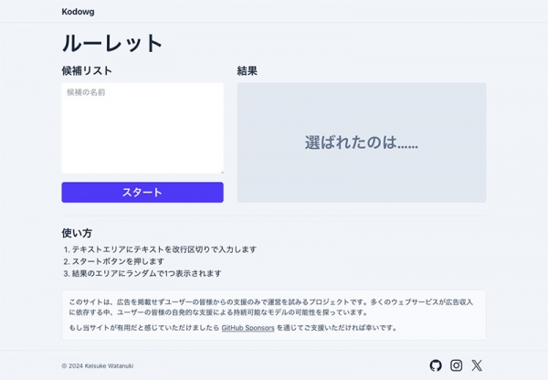 レクリエーション時などWeb上のタイマーやルーレットを使いたいことがよくありましたが、多くのツールは広告が多かったりと、純粋な機能を利用する上で集中を妨げていると感じていました。先人の作ったものを悪く言いたいわけではないのですが、「もう少しミニマルなサイトがあっても良いのに……」と常々思っていて。探してもなかなか理想的なものが見つからなかったので、自作することにしました。