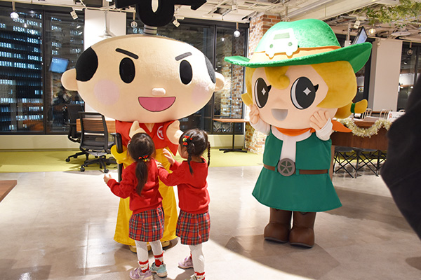 「社員ご家族向け会社説明会」では、毎年エイチームのキャラクターが、ご家族の皆さまをお出迎えします。今年は、車査定・車買取サイト「ナビクル」の公式キャラクターである「なびくるみ」が新しく仲間入り。「なびくるみ」や「引越し侍」が、ご家族の皆さまと一緒に写真撮影を行うなど、キャラクターはキッズたちに大人気でした。