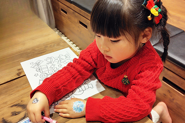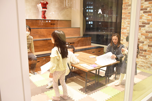 昨年と同様、社員食堂を開放し、エイチーム社員が普段食べている食堂のメニューやこの日のために作られたお子様メニューをお楽しみいただきました。今年もクリスマス時期の開催ということで、会場にはクリスマスの装飾を施したり、お子様向けにクリスマスプレゼントとしてお菓子の入ったブーツをお渡ししました。今年は社員のご家族約総勢101名が参加しました。