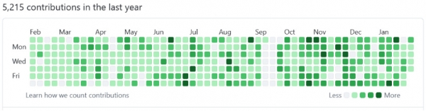 開発の頻度については、ほぼ毎日ですね。GitHubのコントリビューション(活動量が可視化される指標)を見ても、プライベートの時間を含めて毎日欠かさず何かしらのコードを書いているのが分かるくらい、生活の一部になっています。